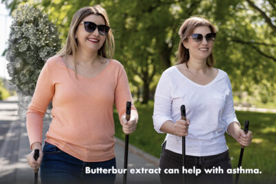 In our clinic, overall, we see significantly better results for asthma from a formula including nutrients and botanicals that enhance the actions of butterbur root alone. The potency of butterbur is magnified by combining it with vitamin B2 (riboflavin), the mineral magnesium, the botanicals ginger and feverfew, and the amino acid 5-Hydroxytryptophan in a formula, which are also helpful in their own right for asthma: